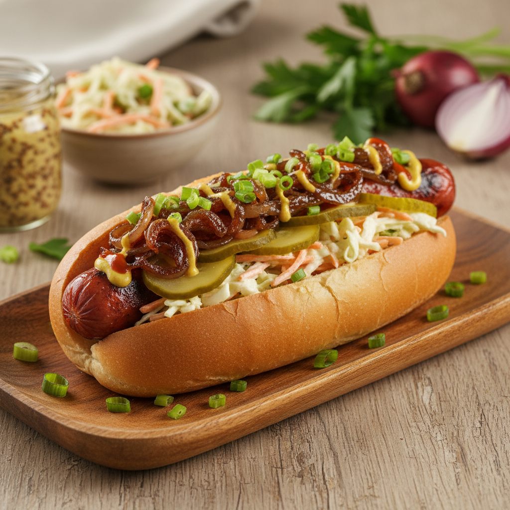 Teine asendamatu komponent on värske salat. Ameerika stiilis coleslaw (kapsa-porgandi salat majoneesikastmes) sobib suurepäraselt, andes vajalikku mahlasust ja krõmpsu. Alternatiivina võib kasutada kiirhapendatud kurke või punast sibulat, mida on leotatud äädika, suhkru ja vee segus. Hapu element on ülioluline, et lõigata läbi vorsti ja kastmete rasvasusest.