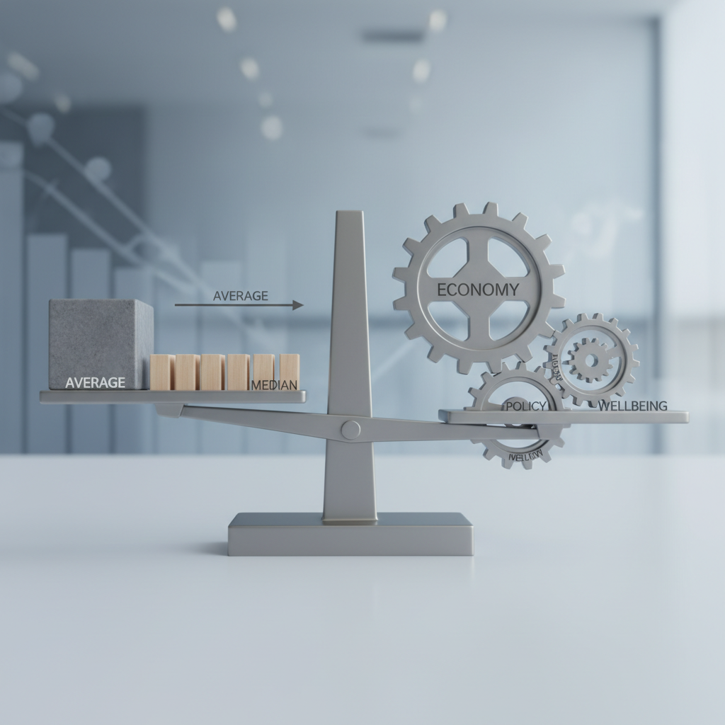 - Palgavaesuse ja ebavõrdsuse tuvastamine: Mida suurem on matemaatiline lõhe keskmise ja mediaani vahel, seda suurem on vastavas riigis või sektoris sissetulekute ebavõrdsus. See vahe on oluline indikaator sotsiaalpoliitika planeerimisel, aidates märgata vaesumisriske varakult.